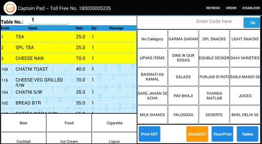 For ensuring seamless co-ordination in delivering the right order to the right table, our KOT software generates three copies. The first copy goes to the chef, the middle copy is directed towards the pick-up staff, and the last copy is for the side station.